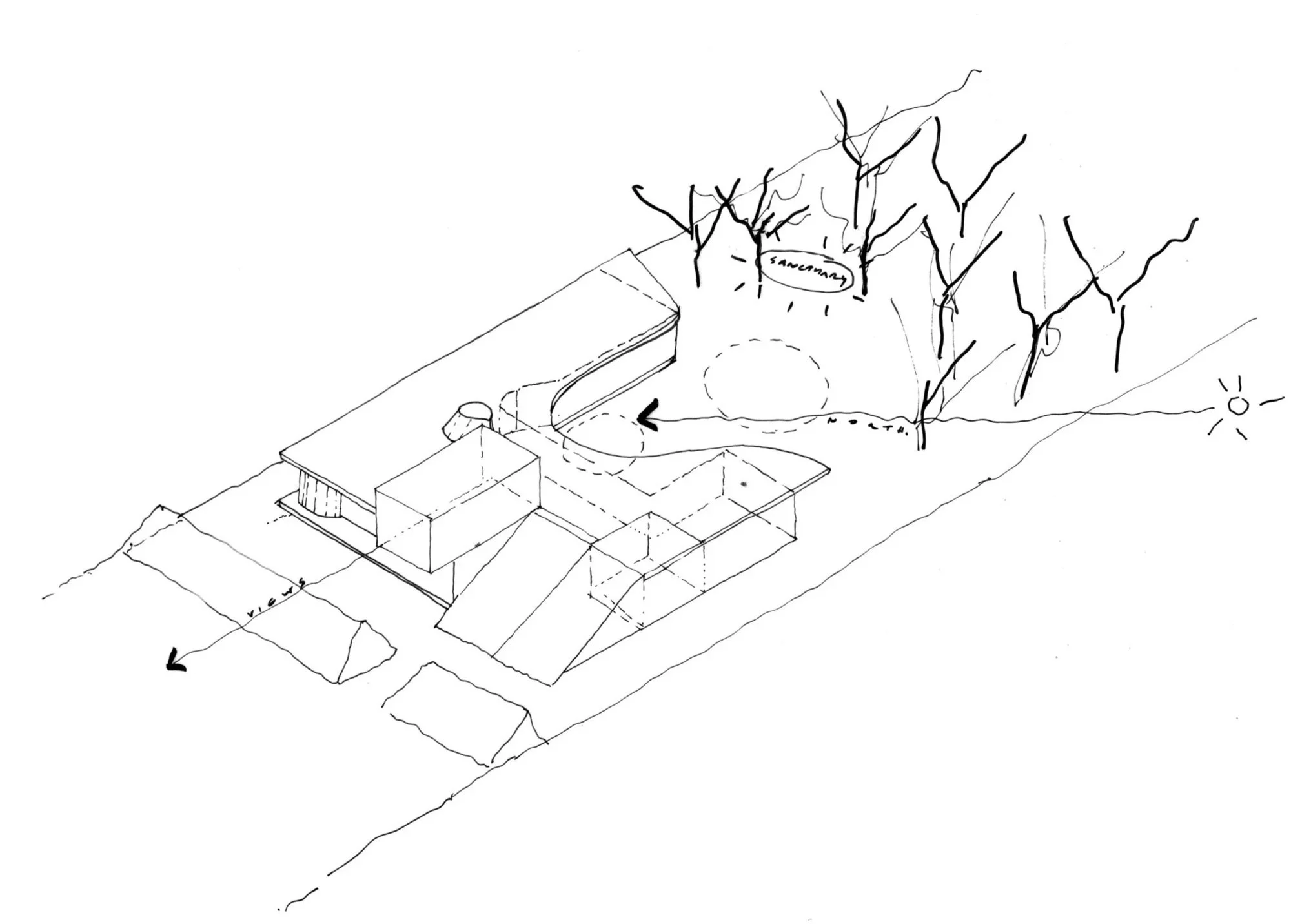 Our clients came to us with an initial concept for a concrete house for themselves and their two teenage children. They were quite fond of the heavily concrete conceived Brazilian modernist architecture from the 1950’s and beyond. Sharing this same interest - our starting reference for the house was Oscar Niemeyer’s own house Casa Canoas from 1951, given its strong relationship to its site and expressive flowing concrete canopy which created a seamless transition between inside and outside.