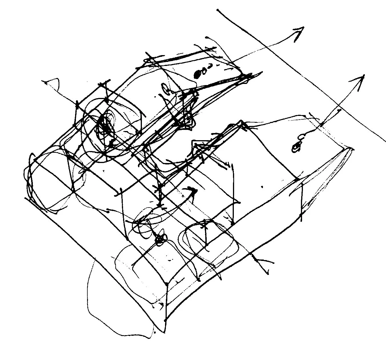 1. Primary sleeping area is located on the most northern end of the wing creating the condition of ‘sleeping amongst the foreshore dunes’. The ceiling height in this area is the highest in the wing. Sectionally - the height was an important element as we wanted to create a feeling of verticality - similar to siting outside under the large foreshore grey-gums.